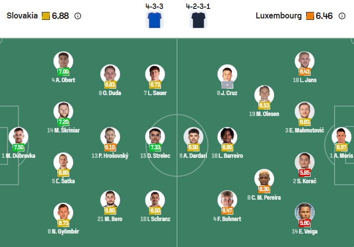 Thông tin lực lượng Slovakia vs Luxembourg: