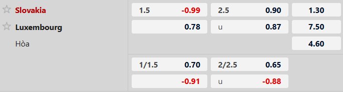 Hàng công của Slovakia chơi không hề ấn tượng ở bảng A khi họ chỉ mới ghi được đúng 3 bàn. Điểm sáng lớn nhất có lẽ chính là hàng phòng ngự chỉ mới phải nhận về 2 bàn thua. Lượt đi, Slovakia cũng chỉ thắng tối thiểu trước Luxembourg. Dù đội khách thua kém toàn diện về mọi mặt, khả năng các cầu thủ chủ nhà có thể thắng đậm cũng là không nhiều. Vậy nên với tỷ lệ tài xỉu 2 1/2, cơ hội để kèo Xỉu xuất hiện vẫn là rõ ràng hơn đôi chút.