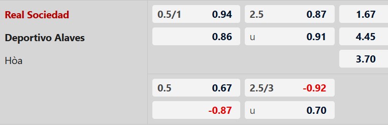 Thông tin tỷ lệ kèo Sociedad vs Alaves: