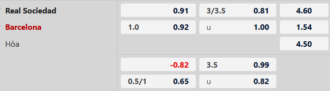 Thông tin tỷ lệ kèo bóng đá Sociedad vs Barcelona:
