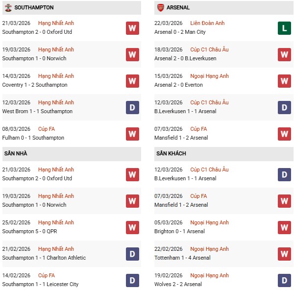 Arsenal chiếm ưu thế rõ rệt về phong độ và đẳng cấp nên Southampton có thể gây khó khăn nhưng khó tạo bất ngờ lớn.