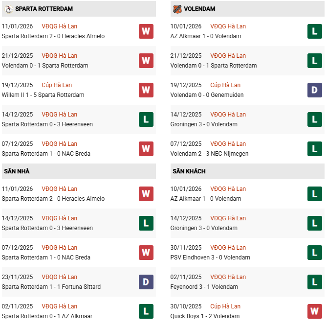 NHẬN ĐỊNH SPARTA ROTTERDAM VS VOLENDAM, 03H00 NGÀY 16/1