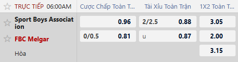 Thông tin tỷ lệ Sport Boys vs Melgar: