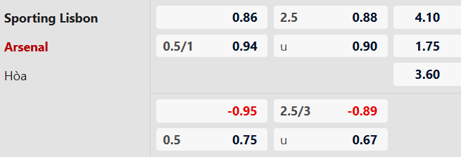 Thông tin tỷ lệ kèo bóng đá Sporting Lisbon vs Arsenal: