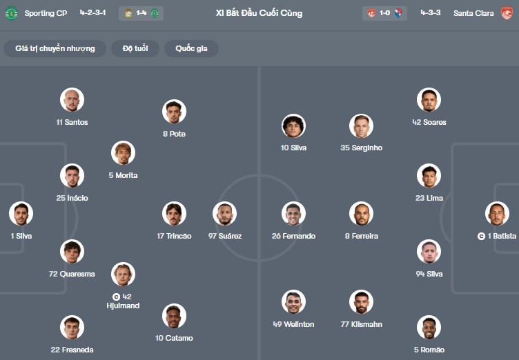 Cũng may dưới mái vòm Alvalade, đội bóng này đang sở hữu phong độ khủng khiếp: thắng trọn vẹn 13 trận chính thức gần nhất (8 cuộc đấu thuộc giải VĐQG). Bên cạnh đó, Sporting Lisbon thường xuyên "bắt nạt" Santa Clara với tỷ lệ chiến thắng áp đảo: 13/17. Đây là những cơ sở giúp họ tự tin hướng đến việc đánh bại đối thủ dù không cần phải bung nhiều sức.