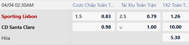 Soi kèo châu Á Sporting Lisbon vs Santa Clara: