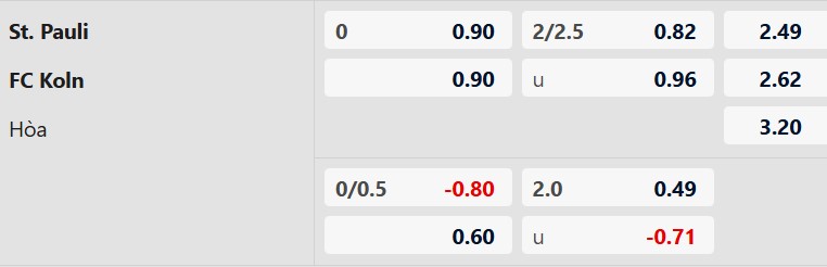 Thông tin kèo bóng đá St. Pauli vs FC Koln: