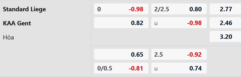 Standard Liege cũng không xuất sắc trên sân nhà từ đầu Belgian Pro League 2025/26 khi họ có đúng 3 thắng lợi sau 10 trận. Đặc biệt, Liege đang lép vế hoàn toàn về phương diện đối đầu trực tiếp khi thua tới 12/15 màn chạm trán gần nhất với Gent tại các giải đấu chính thức. Như vậy khả năng Gent mang điểm số về nhà vẫn rất khả thi.