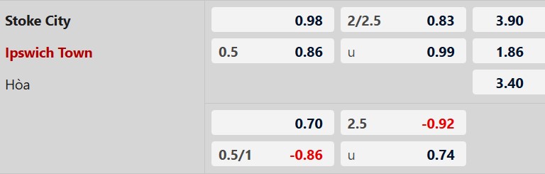 Nhận định kèo tài xỉu Stoke vs Ipswich:
