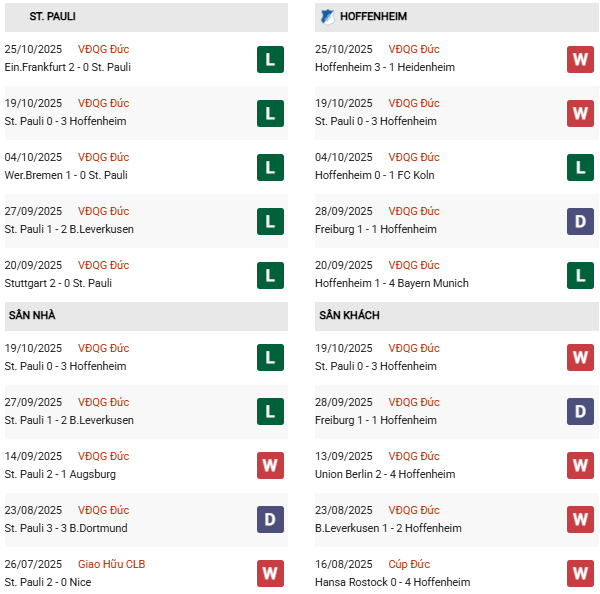 - Trên sân nhà, St.Pauli thắng 2, thua 3 trước Hoffenheim.