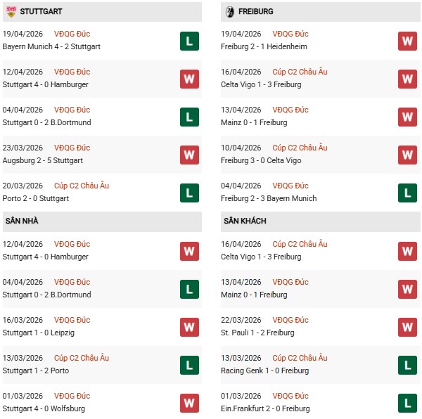 - Trên sân nhà, Stuttgart thắng 5, thua 3 trước Freiburg.