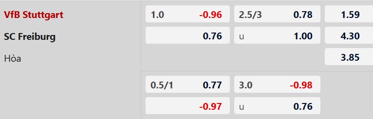 Nhận định kèo châu Á Stuttgart vs Freiburg: