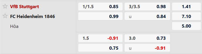 Thông tin tỷ lệ bóng đá Stuttgart vs Heidenheim: