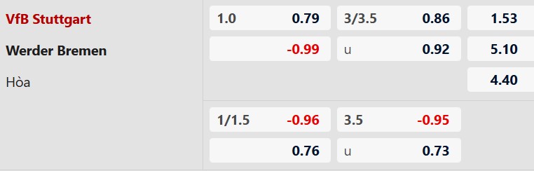 Soi kèo châu Á Stuttgart vs Werder Bremen: