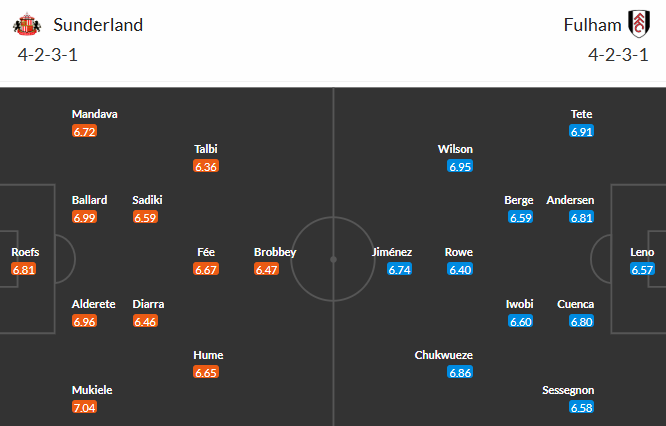 Đội hình dự kiến Sunderland vs Fulham:
