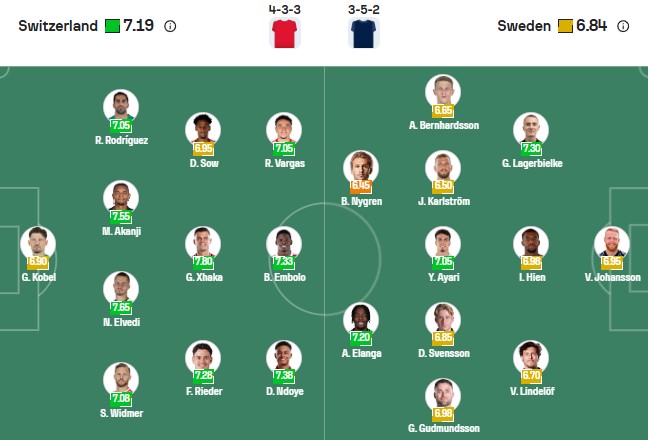 Đội hình dự kiến Thụy Sĩ vs Thụy Điển: