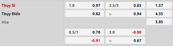 Thông tin tỷ lệ kèo bóng đá Thụy Sĩ vs Thụy Điển: