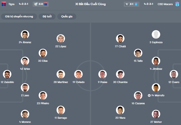 Đội hình dự kiến Tigre vs Macara: