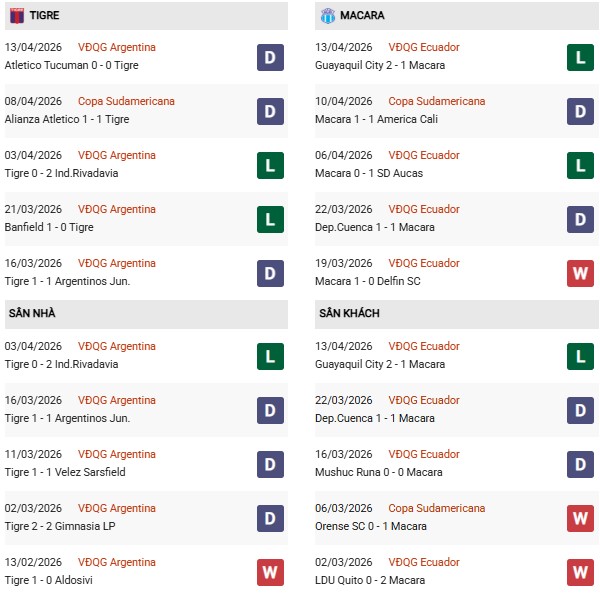 Thống kê phong độ Tigre vs Macara: