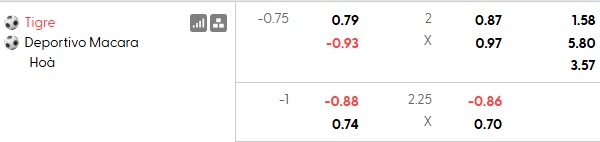 Thông tin tỷ lệ Tigre vs Macara: