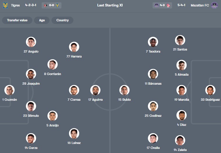 Đội hình dự kiến Tigres UANL vs Mazatlan: