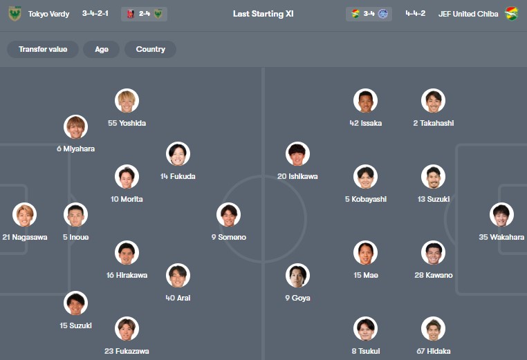 Đội hình dự kiến Tokyo Verdy vs JEF United: