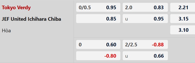 Thông tin tỷ lệ kèo Tokyo Verdy vs JEF United: