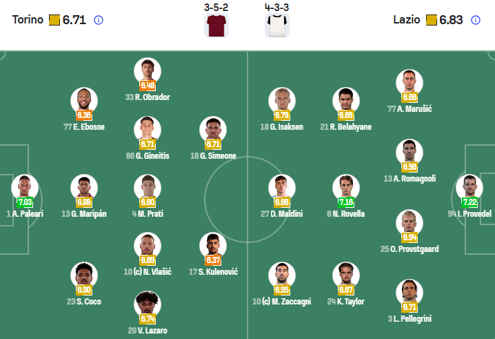 Lazio nổi bật với phong cách kiểm soát bóng chặt chẽ, phối hợp nhóm nhỏ ở trung lộ và khai thác khoảng trống bằng những pha di chuyển thông minh. Đặc biệt, thành tích đối đầu trên sân của Torino mang lại cho họ sự tự tin nhất định. Tuy nhiên, việc thiếu đi sự sắc bén ở những thời điểm quyết định khiến Lazio đôi khi gặp khó trong việc kết liễu trận đấu.