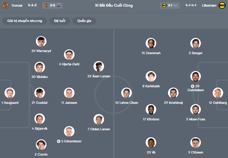 Đội hình dự kiến Tromso vs Lillestrom: