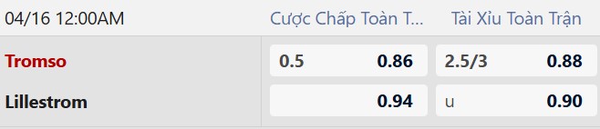 Thông tin tỷ lệ kèo Tromso vs Lillestrom:
