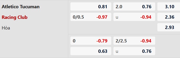 Soi kèo châu Á Tucuman vs Racing Club:
