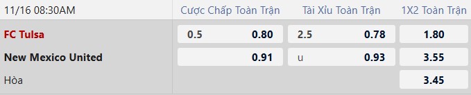 Thông tin tỷ lệ kèo Tulsa vs New Mexico: