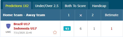 Xét về đẳng cấp, kinh nghiệm và chất lượng cầu thủ, U17 Brazil vượt trội hoàn toàn. Tuy nhiên, nếu U17 Indonesia duy trì được tổ chức tốt và tinh thần chiến đấu cao, họ có thể tránh một thất bại nặng nề.
