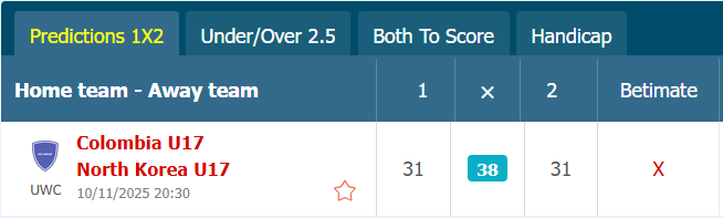 Dự đoán U17 Colombia vs U17 Triều Tiên: