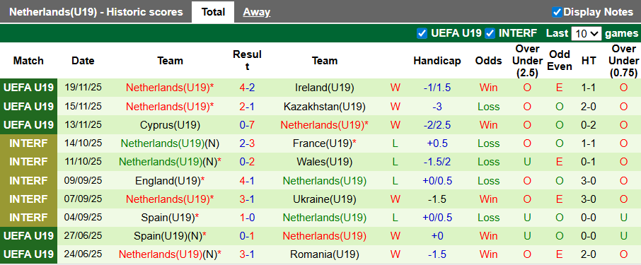 Thống kê phong độ U19 Phần Lan vs U19 Hà Lan: