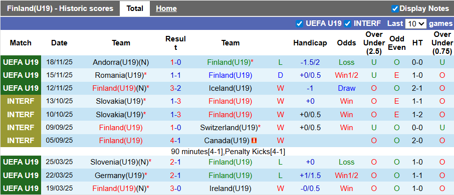 Tỷ số lẻ: 8/9 trận gần đây của U19 Phần Lan ở giải U19 châu Âu kết thúc với tỷ số lẻ. Điều tương tự cũng diễn ra ở 3/4 trận vừa qua của U19 Hà Lan ở giải U19 châu Âu.