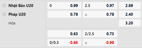 Thông tin tỷ lệ bóng đá U20 Nhật Bản vs U20 Pháp: