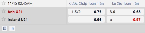 Thông tin tỷ lệ kèo U21 Anh vs U21 Ireland: