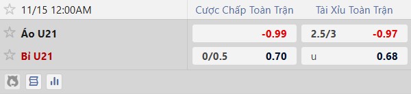 Thông tin tỷ lệ U21 Áo vs U21 Bỉ: