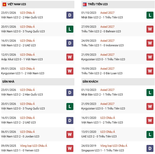 Thành tích đối đầu U23 Việt Nam vs U23 Triều Tiên: