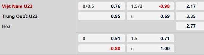 Thông tin tỷ lệ kèo bóng đá U23 Việt Nam vs U23 Trung Quốc: