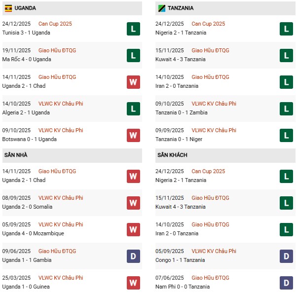 Nếu xét kết quả trận mở màn VCK AFCON 2025, Tanzania bớt tệ hơn khi chỉ thua sát nút 1-2 còn Uganda phải đến phút 90+2 mới tìm được bàn danh dự sau khi thua trước đến 3 bàn. Tuy nhiên nhìn rộng ra thì Tanzania đã 8 trận liên tiếp thua (6) nhiều hơn hòa (2) và 2 kết quả hòa đều ở những lần họ được đánh giá cao hơn đối thủ (tức vẫn không đạt yêu cầu).