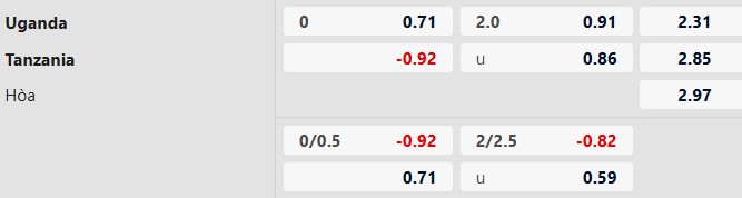 Thông tin tỷ lệ cược Uganda vs Tanzania: