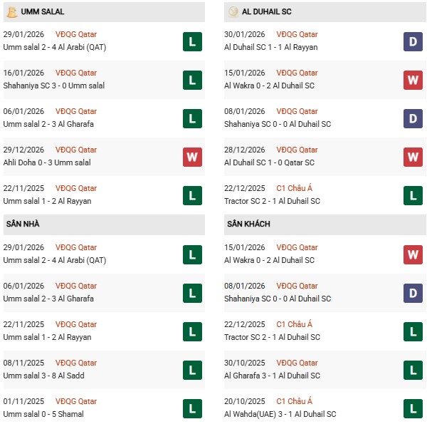 - Trên sân nhà, Umm Salal thắng 3, thua 6 trước Al Duhail.