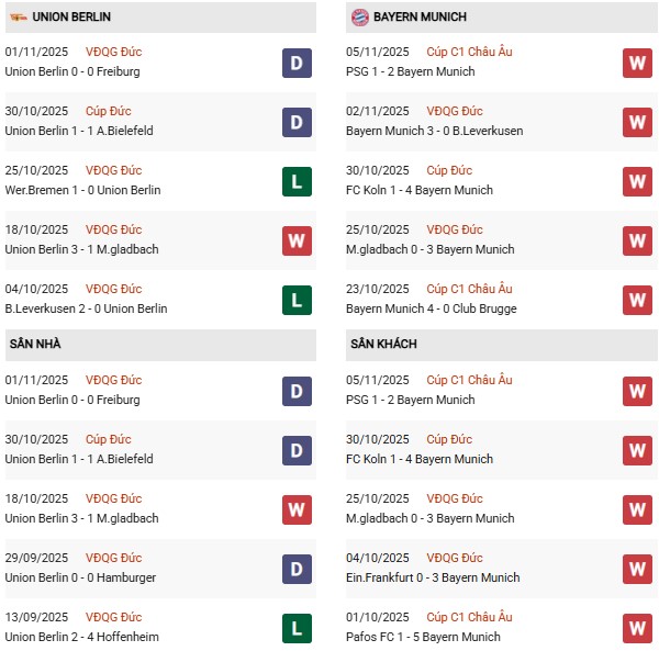 Thống kê phong độ Union Berlin vs Bayern Munich: