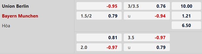 Thông tin tỷ lệ kèo bóng đá Union Berlin vs Bayern Munich: