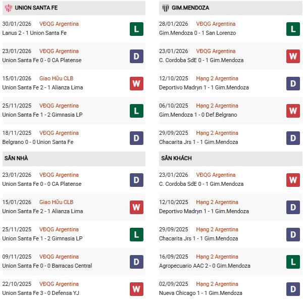 Union Santa Fe bước vào trận đấu này với thành tích sân nhà không mấy khả quan, khi họ chỉ thắng 1/8 trận gần nhất tiếp đón các đối thủ. Trong khi đó, Gimnasia Mendoza rất tự tin làm khách của Union Santa Fe. Trong 8 trận chính thức gần đây, Gimnasia Mendoza thắng 4 hòa 2 chỉ thua 2. Trên sân khách, Gimnasia Mendoza cũng chỉ thua 1/4 trận gần nhất.