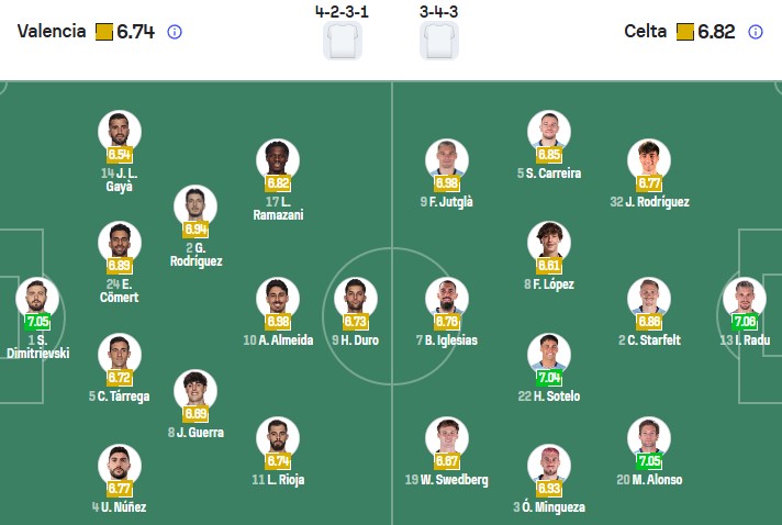 Đội hình dự kiến Valencia vs Celta Vigo: