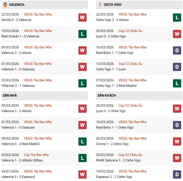- Valencia thắng 5, hòa 2, thua 3 trong 10 trận gặp Celta Vigo gần đây.