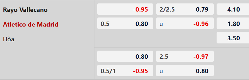 Soi kèo châu Á Vallecano vs Atletico Madrid: